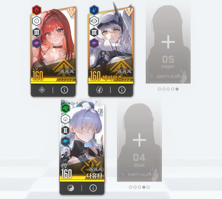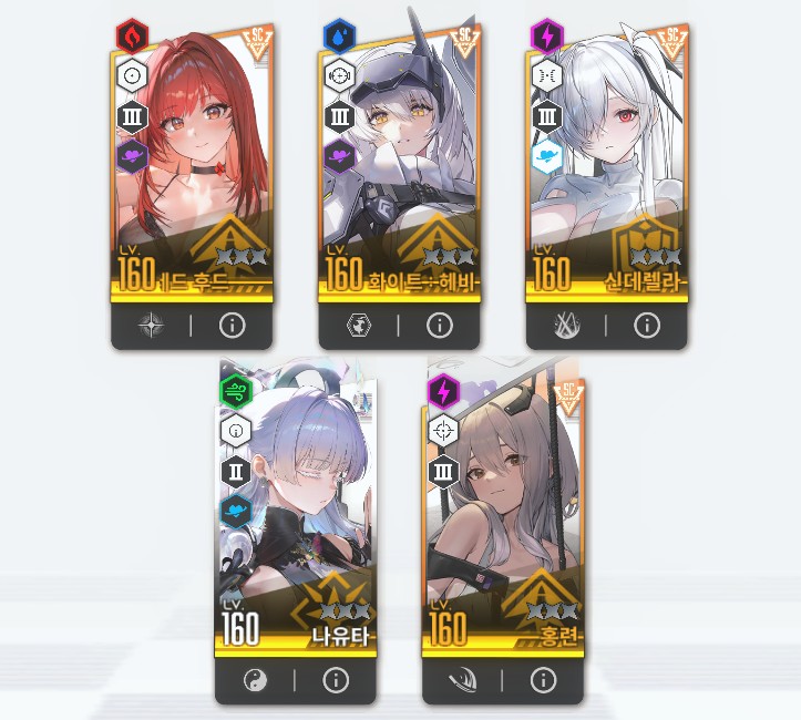나유타 혼자 밀던 필그림 타워도 [ 1버 라피:레드후드 / 2버 나유타 / 3버 스노우화이트:헤비암즈 ]로 급한 대로 1/2/3 버가 구성되어 밀리지 않고 돌게 됩니다. 그리고 뽑기에서 신데렐라와 홍련도 등장해 5명 꽉채운 필그림 덱을 구성하게 됩니다. 레이블이 신규픽업으로 등장해서 명함만 챙긴다고 열심히 뽑았지만 160뽑 명함을 달성합니다 ㅂㄷㅂㄷ pvp캐라는데 그냥 건너뛰고 재화를 좀 아껴둘걸 그랬나 싶기도 해요...