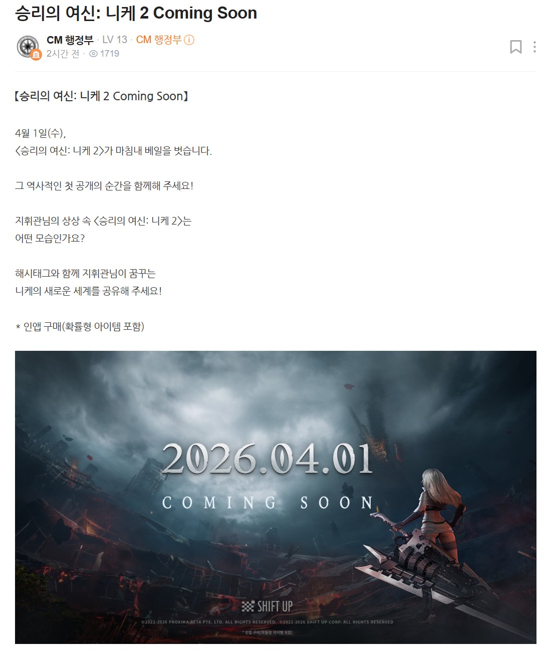 [승리의여신:니케]2026만우절 대비 공지들