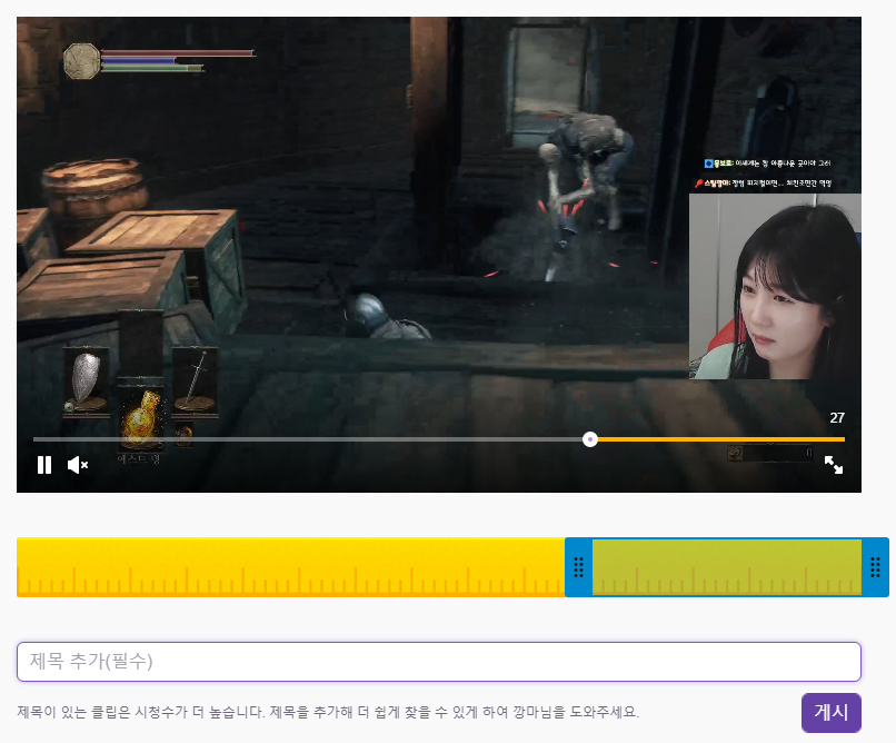 단축키 알트+X를 누르면 30초짜리 클립이 방송제목으로