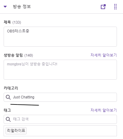 생방송 대시보드에서 간단하게 변경할수 있는데다가
