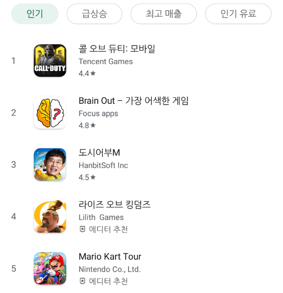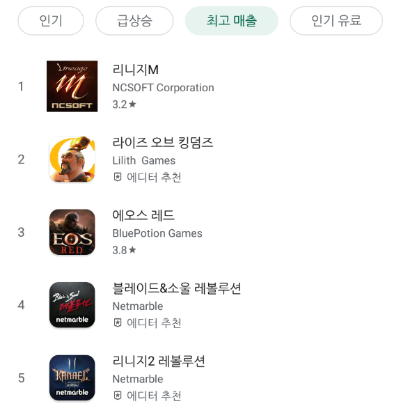매출랭킹에서 리니지는 역시 빠지질 않네요;;