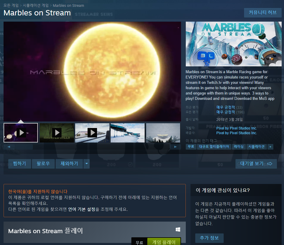 스팀 주소 : https://store.steampowered.com/app/1170970/Marbles_on_Stream/