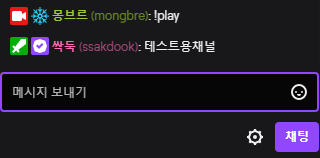 트위치와 연동해두면 시청자가 !play라는 명령어로 게임에 참여할 수있는