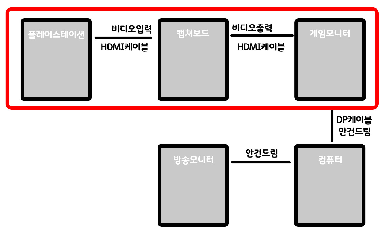 정상적으로 캡쳐보드가 동작중이면 저 검은 화면 부분에 플스화면이 나오고있을거에요