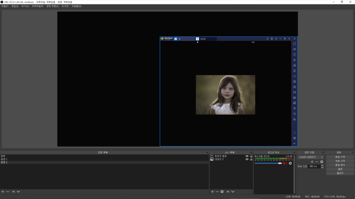 실험결과2. 블루스택에서는 스노우 구동까지는 확인했음