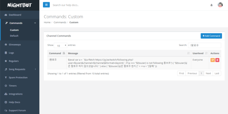 #나이트봇 명령어 수정방법 #팔로우 딜레이변경 #나이트봇 딜레이변경