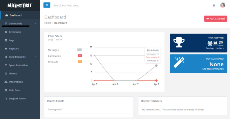 일단 나이트봇 사이트에 가셔서 트위치 아이디로 로그인해주세요