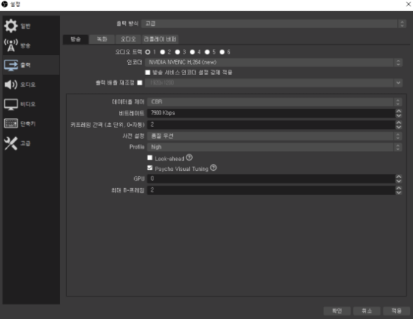 인코더 : 그래픽카드에 여유가 있다면 H.264 / CPU에 여유가 있다면 x264