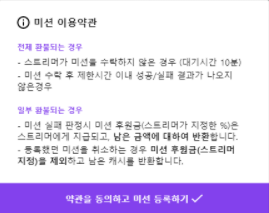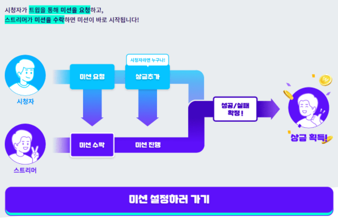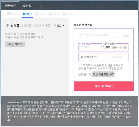이제는 미리 충전->미션요청을해서 스트리머가 수락하면