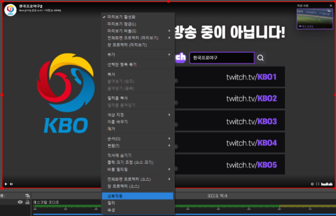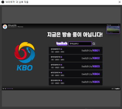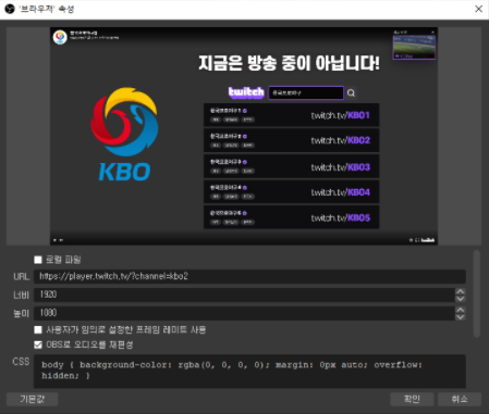 야구 같이보기 진행시 브라우저 소스를 추가해놓고