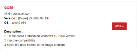 windows 2004 version 오디오문제가 수정된 드라이버라고 하니까