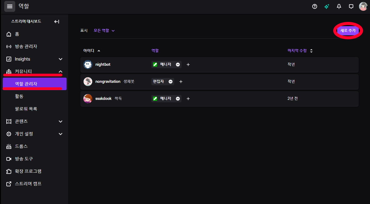 레프트메뉴 커뮤니티 -> 역할 관리자로 이동해서