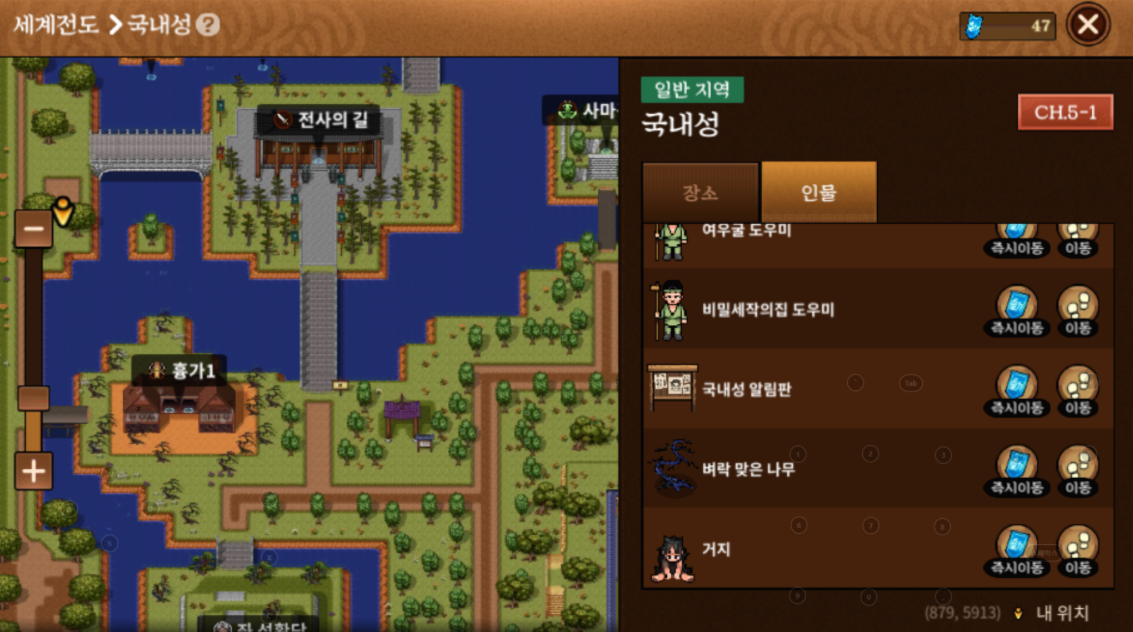 물을 다 담았다면 이제 국내성 벼락 맞은 나무로 간다