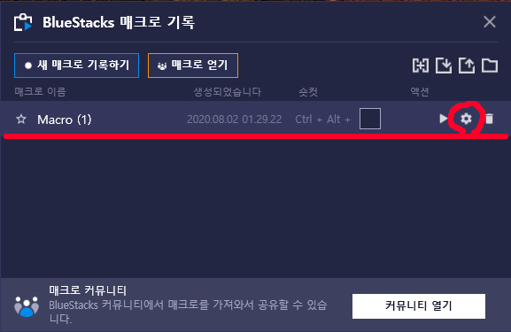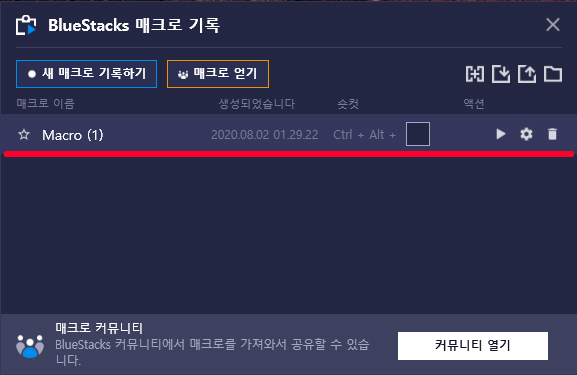 메뉴를 누르면 매크로 기록창이 나옵니다