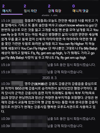- 강제퇴장의 경우 채팅불가+방송시청불가 동시처리