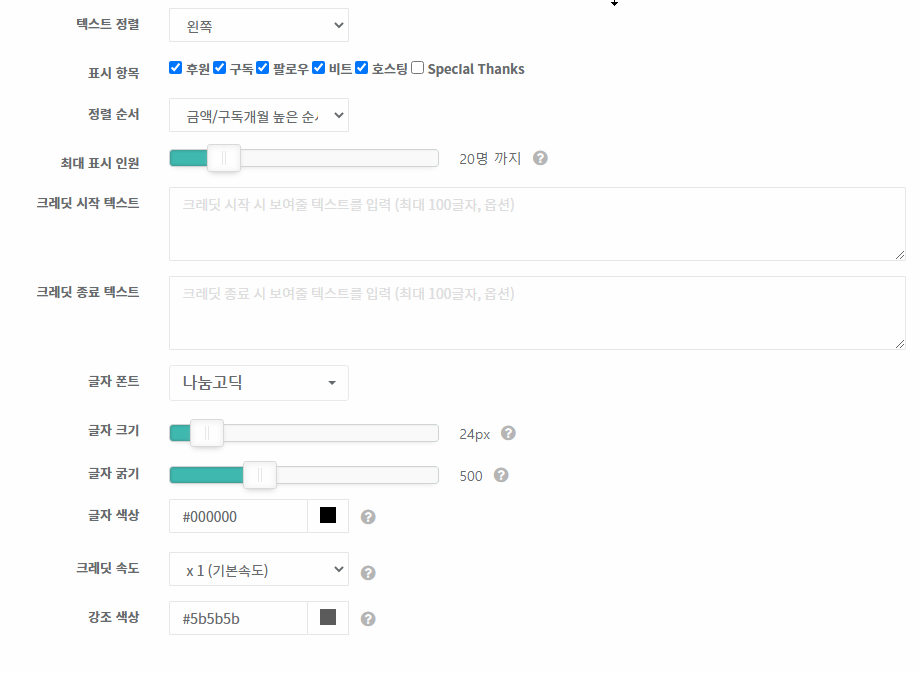 방송중에 후원,팔로우,구독,비트,호스팅해준 유저들의 목록을 보여줍니다