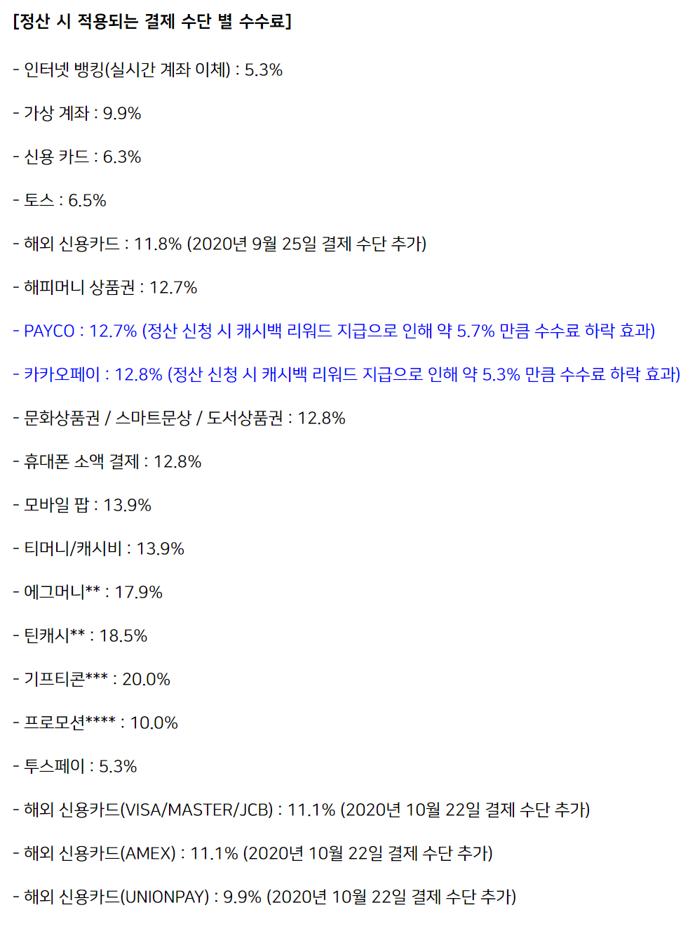 투네는 수수료0% 트윕은 1%임을 상당히 강조하는 경향이 있었으나 실제 1%는 수수료에 큰 영향이 없고 위에서 적었던 2~15%가량 되는 결제대행 수수료와 10%부가세, 3.3%의 원천소득세가 큰부분을 차지하기 때문에 저부분은 무시해도 될 수준이긴합니다.