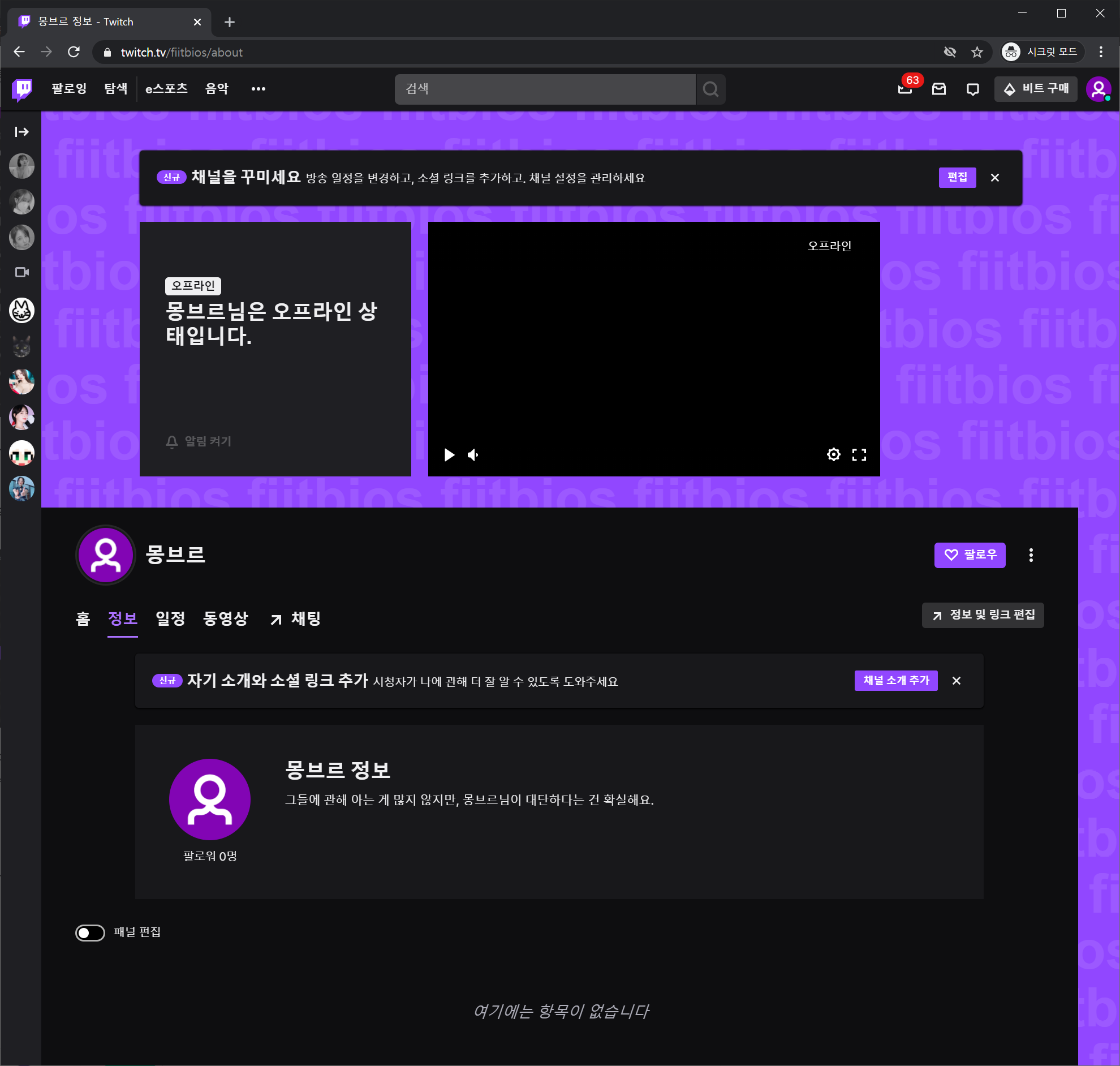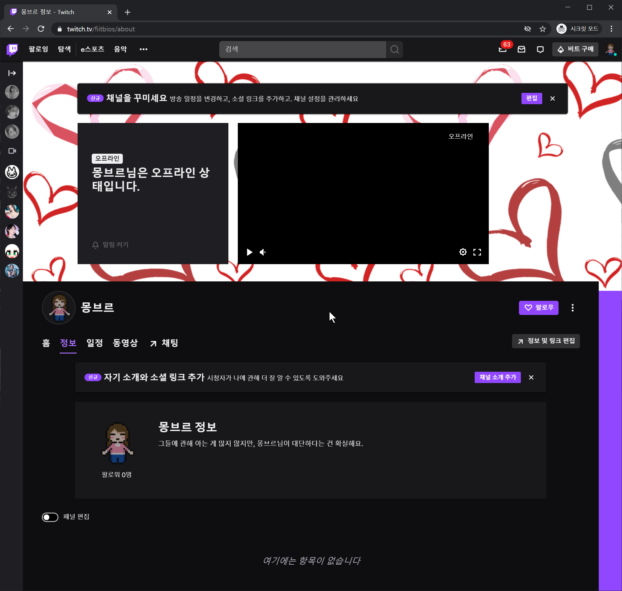 트위치 패널 트윕 투네 후원 배너 링크 추가하기