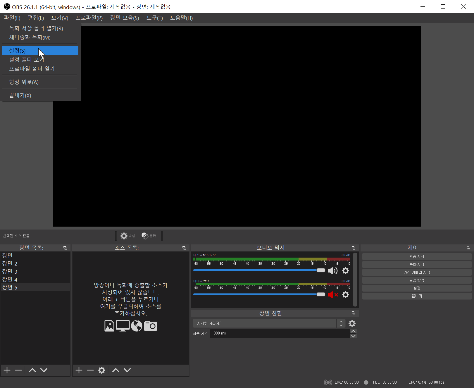 OBS를 실행 -> 파일 -> 설정 -> 방송