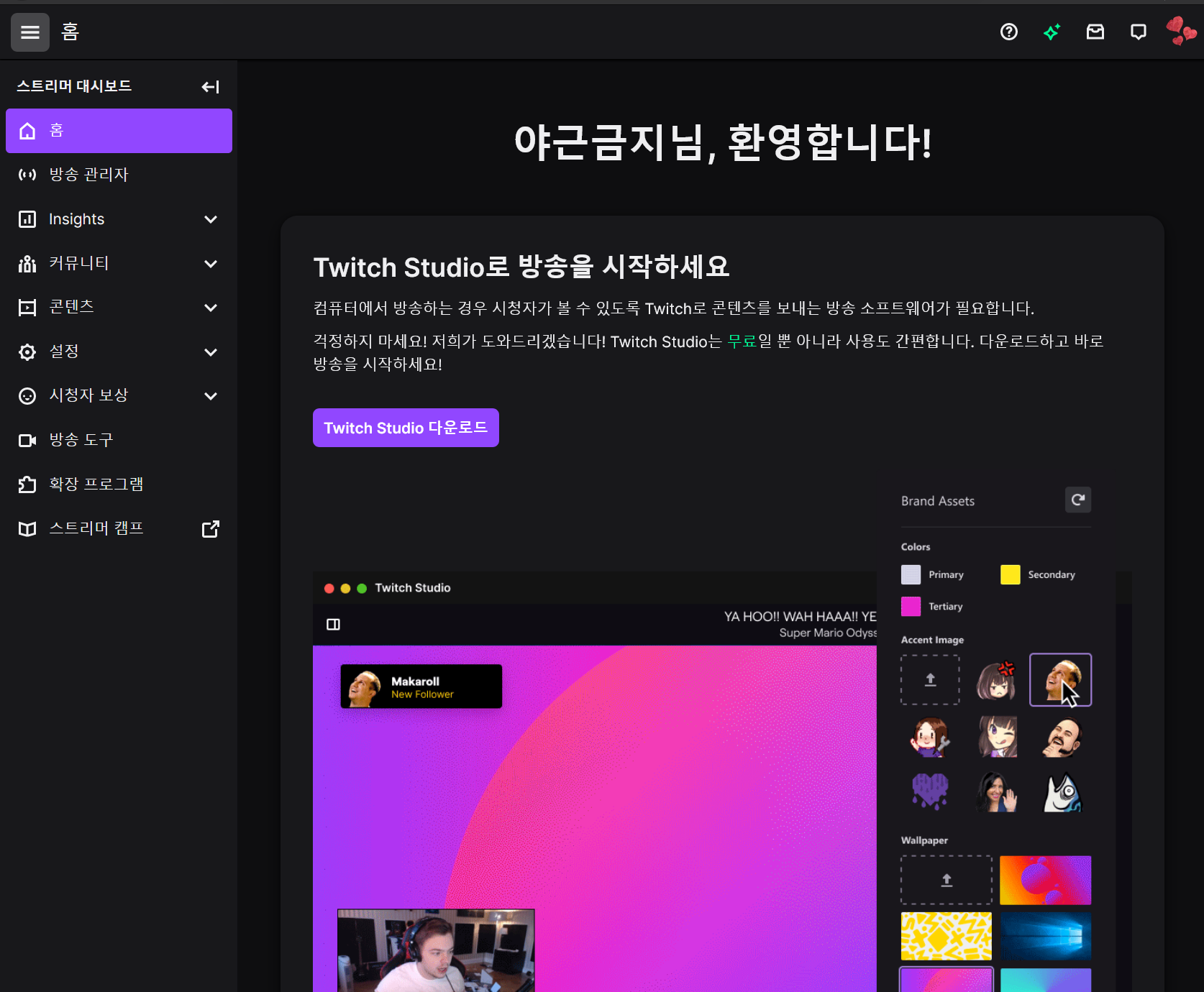 스트리머 대시보드 들어가기