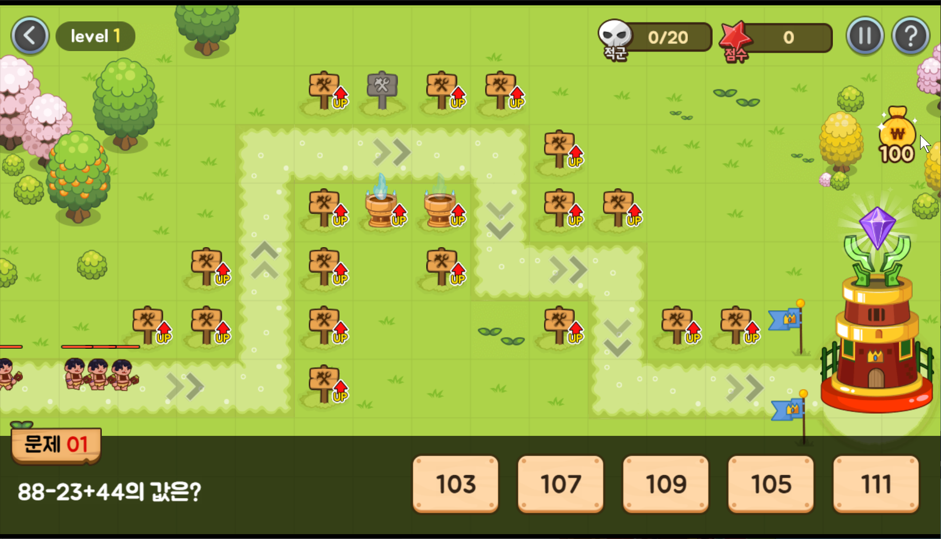 혹시나 게임이 어딨다는건지 못찾으시는 분들은 자연수 4칙연산(+-×÷)로 구성된 타워게임링크 드릴게요!!! 문제를 풀면 돈을 주고 돈으로 타워를 건설해서 적군을 모두 섬멸해야 합니다. 최고 6스테이지까지 있으니 가벼운 마음으로 도전해보세요^오^ 요새 초딩들이 암산을 얼마나 잘하는지 느끼게 됩니다 ㅂㄷㅂㄷ