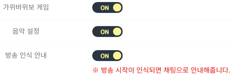 가위바위보 게임 역시 기본 ON으로 되어있어 추가 작업이 필요하지 않습니다