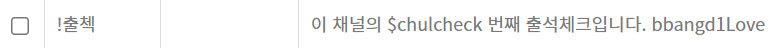 !출첵 명령어는 빵떡이 기본 명령어로 이미 들어가 있어서 딱히 추가적인 작업이 필요하지 않습니다