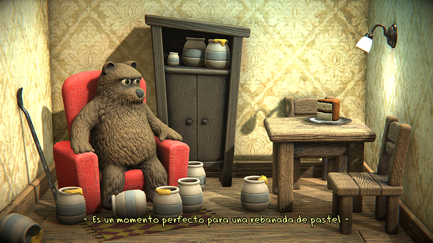 곰이 쇼파에 앉아서 케이크를 먹는 게임 "La Madriguera"