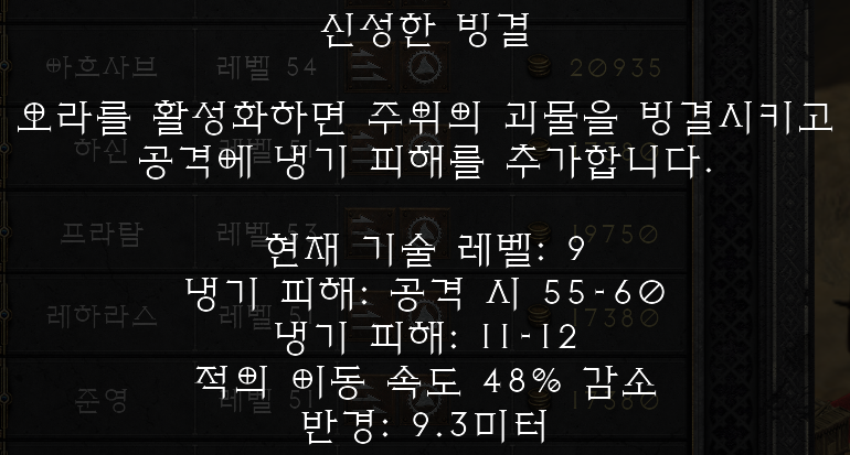 | 악몽 | 신성한 빙결(홀리 프리즈) | 범위내 적 빙결 |