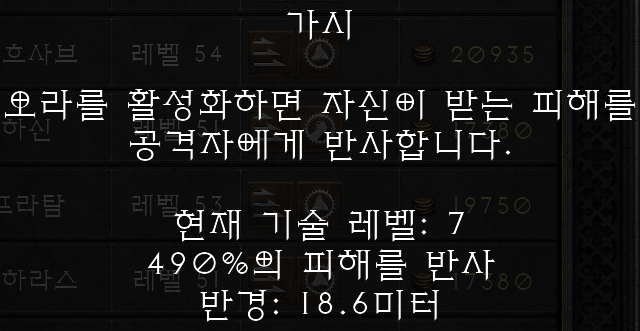 파티원이 받는 근접 물리데미지를 반사합니다. 소환계열이 사용할시 소환수가 데미지를 입으면 데미지를 반사하기 때문에 직접 때리는것 보다 더 딜이 많이 나오는 경우도 있습니다 ㄱ-
