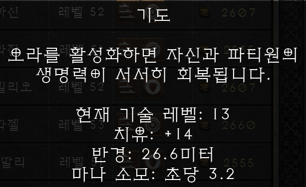 | 일반 / 지옥 | 기도(프레이어) | 생명력 회복 |