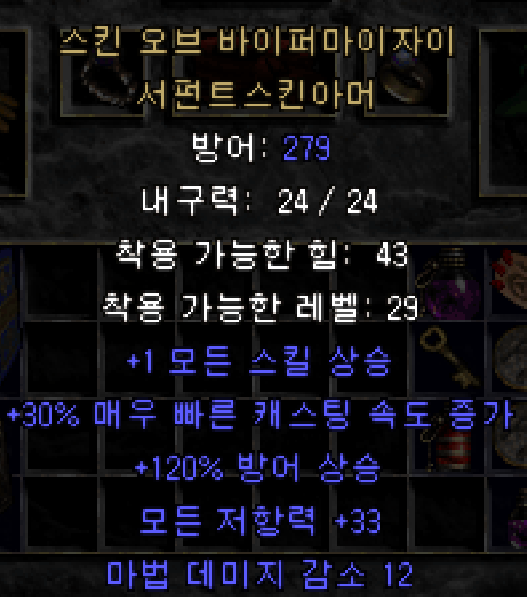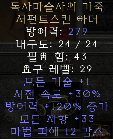 디아블로2 레저렉션 소서 구교복 - 독사마술사의 가죽 서펀트스킨 아머