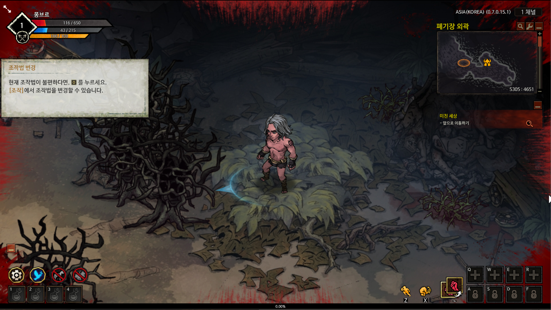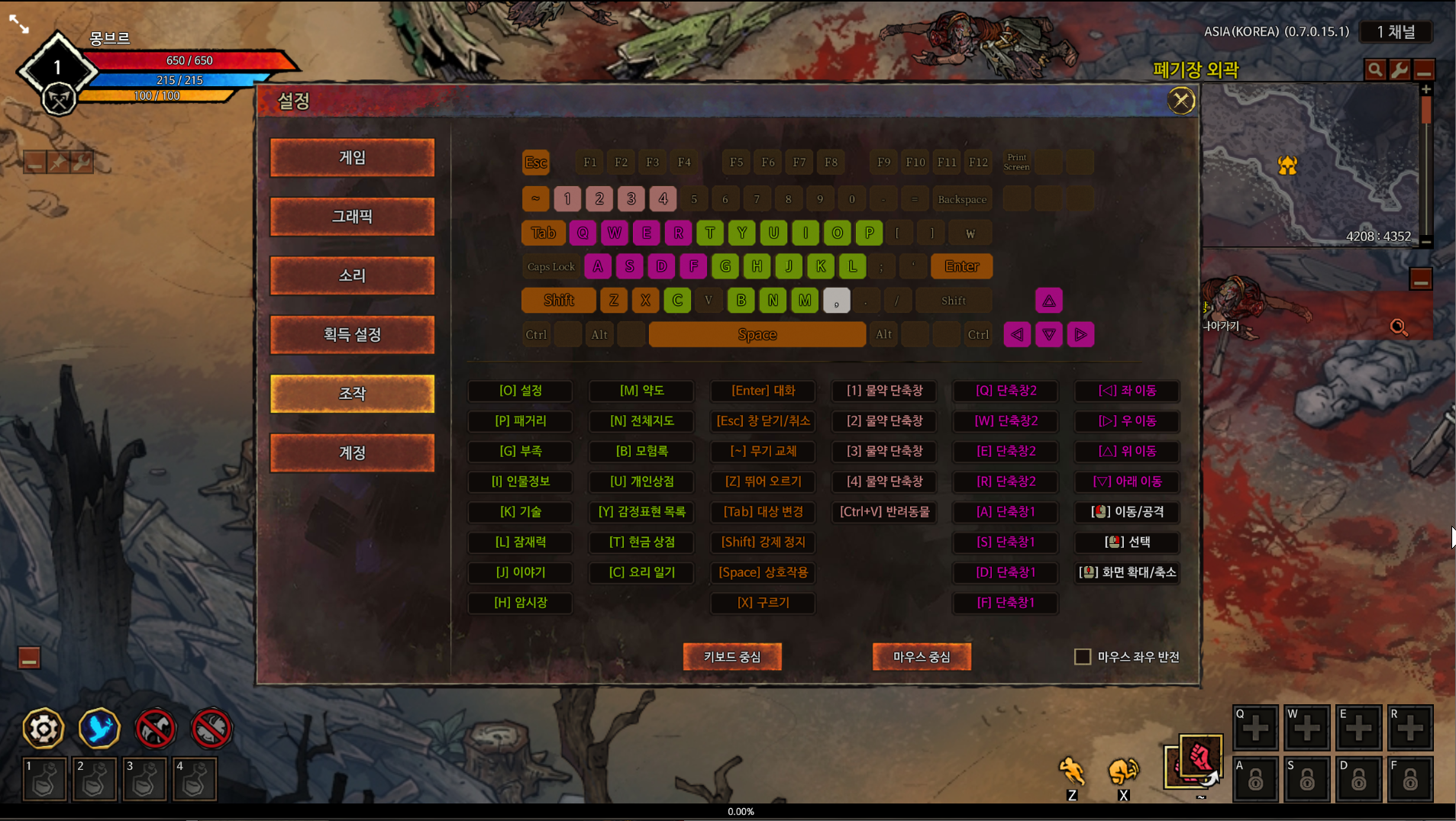 튜토리얼에서 하나씩 설명해주긴 하지만 진도가 너무 느리네요ㅋㅋ O키로 조작키를 미리 확인할 수 있습니다.