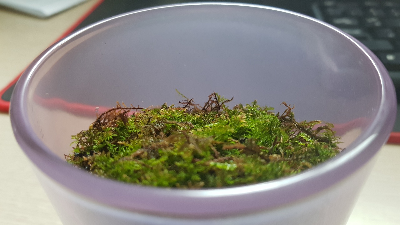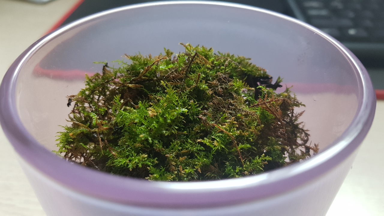 한겨울에 바들바들 떨던애들이라 갈색으로 말라죽은 것도 많은데... 골라내기는 몹시 귀찮아서 그냥 그대로 펴서 얹어두었다. 윌로모스 비슷한 녀석들만 있는줄알았더니 보송보송한 녀석도 하나 보여서 통째로 떠왔다. 한겨울 야외 온도에도 파릇함을 유지하다니 ㄷㄷㄷ 무튼 살짝 건드리면 이끼 특유의 냄새가 퍼지는데 싫어하는 사람들도 있지만 나는 꽤나 좋아하는 편이다.