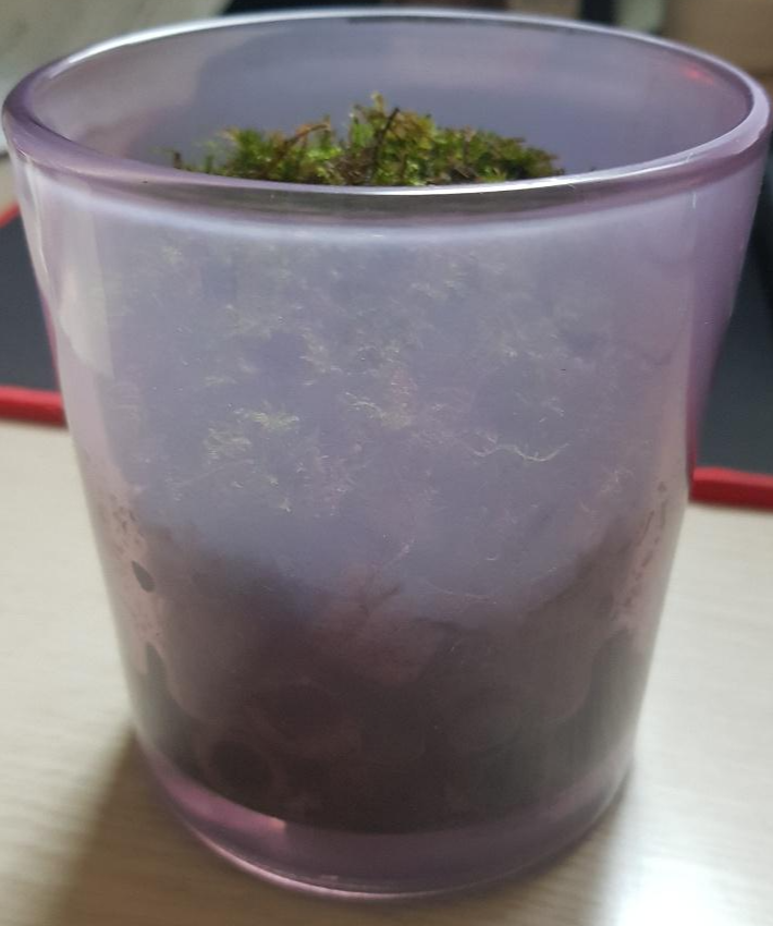 예전에 깡마님 한테 선물 받았던 향초인데.... 이미 홀랑 태우고 빈 유리만 남아서 이걸 뭐에 써먹을지 고민을 하다가 방에 화분을 하나 늘리기로 결정을 했다. 근데 이건 물이 안 빠지잖아?? 일반적인걸 심기가 뭔가 애매해서 마침 한겨울 추위에 야외 빈 화분 위에서 바들바들 떨고 있는 이끼 한 뭉텡이가 생각나서 바로 나가서 살짝 뜯어왔다.