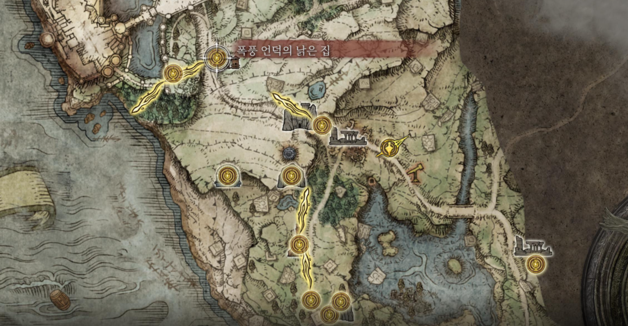 폭풍 언덕의 낡은집은 멀키트를 가는 도중에 발견 할 수 있습니다.