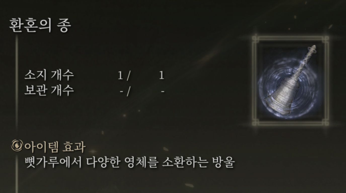 이게 있어야 뼛가루를 사용해 영체를 소환 할 수 있습니다. 장비템은 아니고 그냥 인벤에 가지고만 계시면 됩니다.
