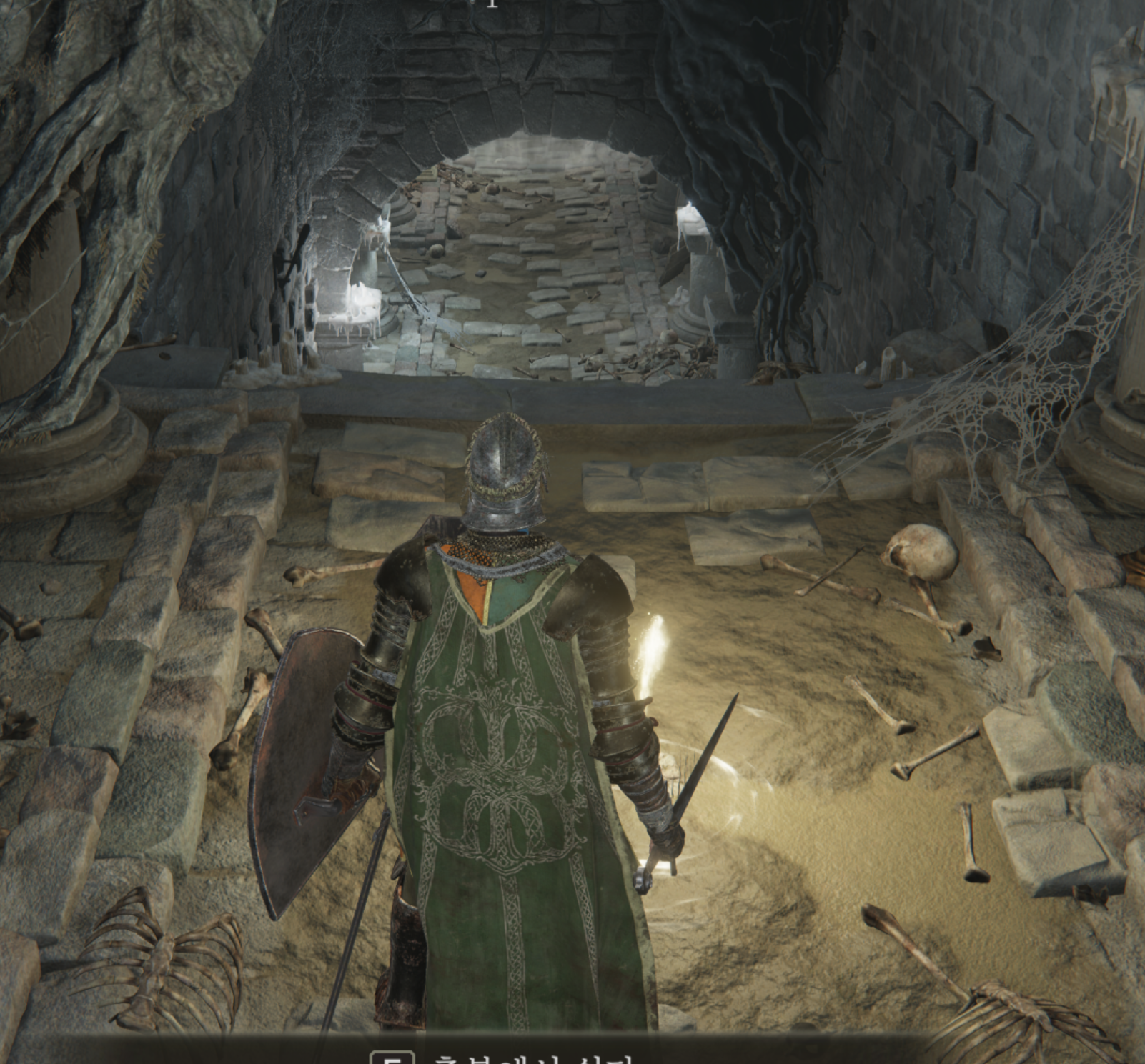 영묘들판 지하묘지 입구에도 축복이 있으니 세이브해주고. 입구에 막혀있는길은 석검열쇠가 필요하니 일단 무시하고 던전을 클리어 해주세요. 몬스터는 해골로 구성되어있으며, 해골은 죽인후 빛나는 가슴 뼈를 때려 확인 사살을 해주어야 합니다. 안그러면 다시 살아나 달려드는 해골을 보게됩니다 ㄷㄷ