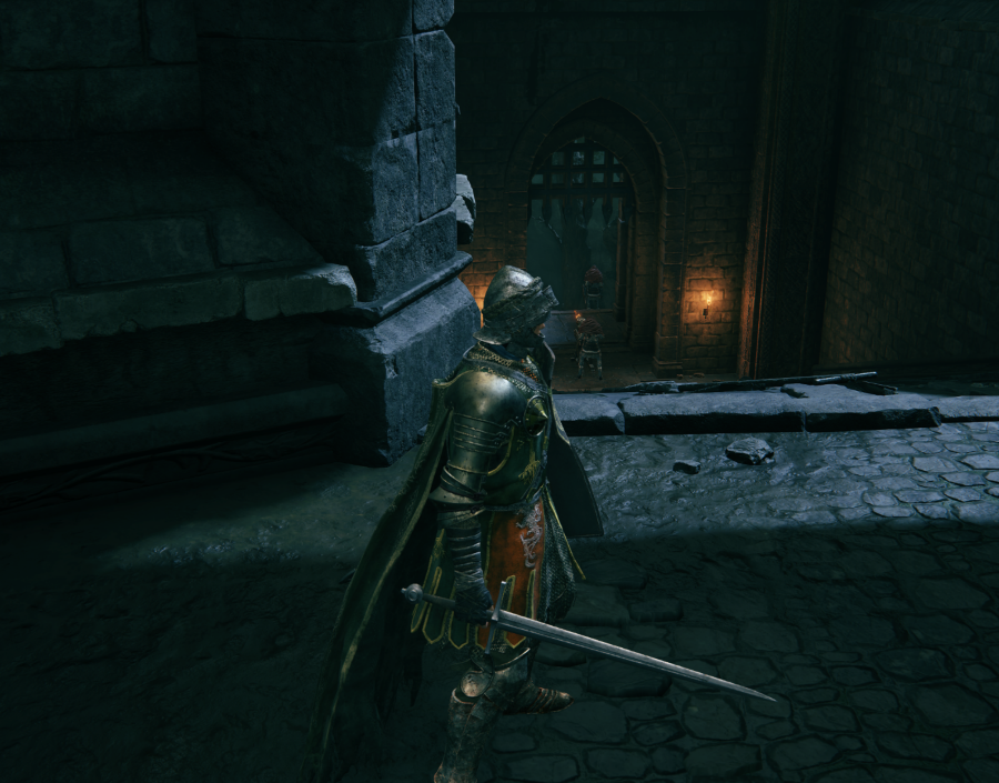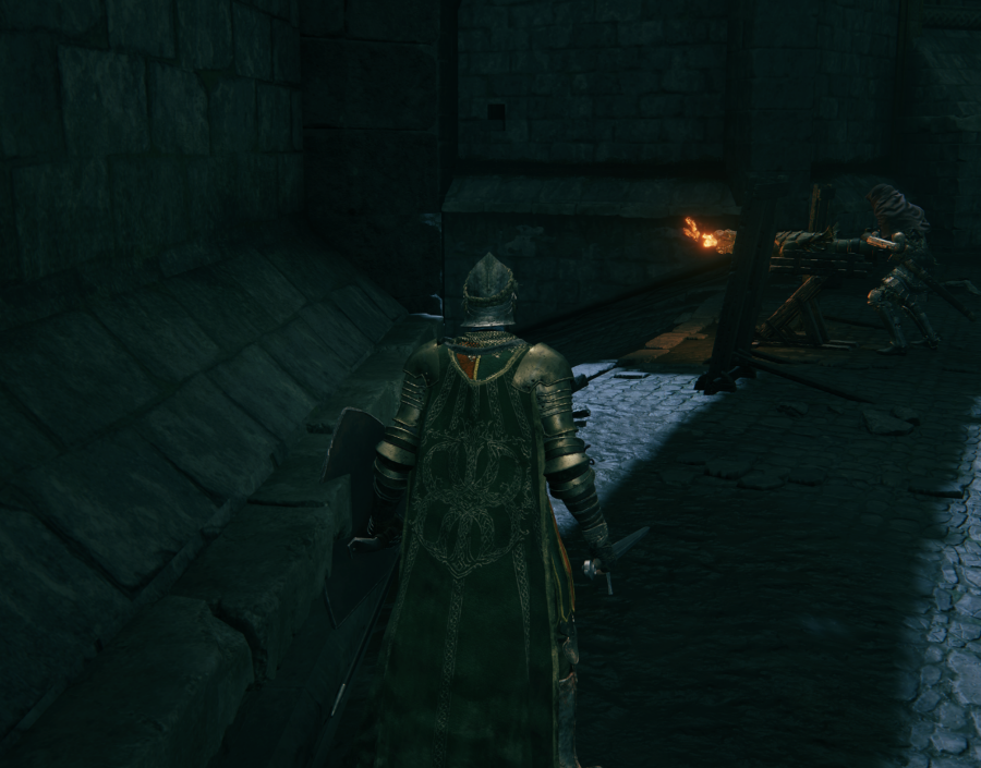 왼쪽벽을 타고 끝까지오면 계단 아래쪽으로 문이 보입니다. 저문을 지나서 내려가다보면 발리스타 쏘는 녀석들이 있어서 스크린샷은 못 찍었네요 ㄷㄷ 문을 나가서도 마찬가지로 길 왼쪽을 쭉 따라 내려가시면 됩니다. 달리기+점프를 적당히 섞어주면 발리스타에도 안맞고 내려갈 수있습니다. 길끝에 문이 하나 더보이는데 문을 나가자 마자 왼쪽을 보시면 됩니다.