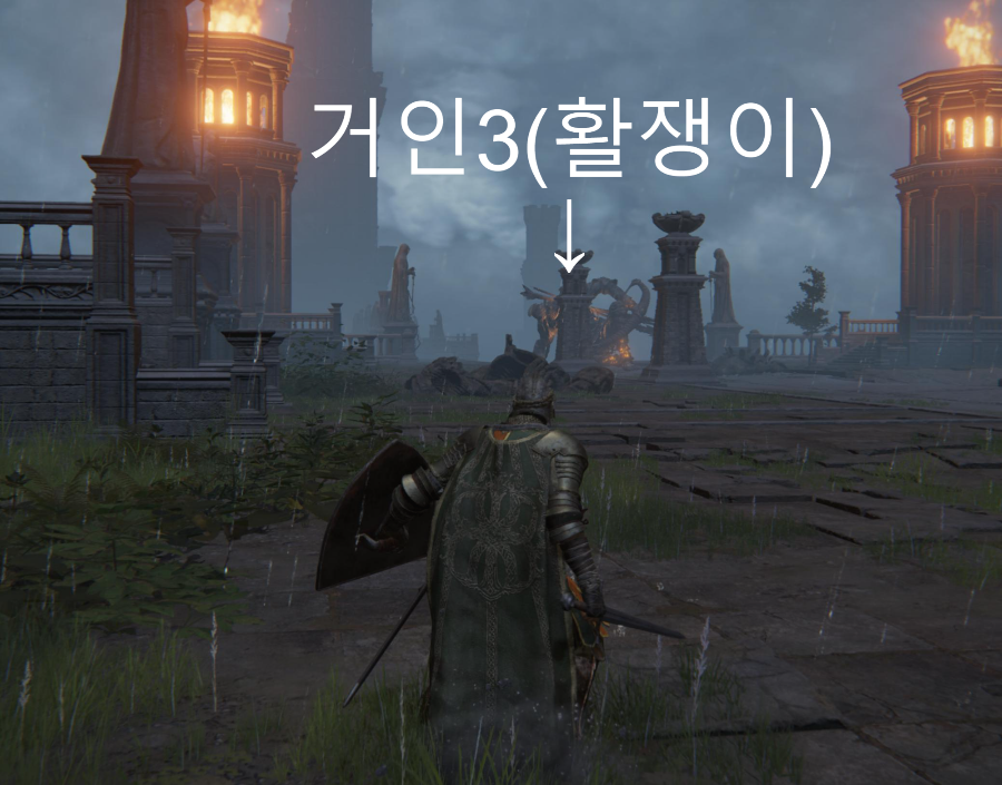 가운데로 가면 거인1, 거인2를 다 상대해야 합니다. 거인1, 거인2는 근접공격을 하니 한쪽으로 붙어서 가시면 하나만 피해가도 됩니다. 거의 끝에 도착하시면 활쏘는 거인3이 있습니다.