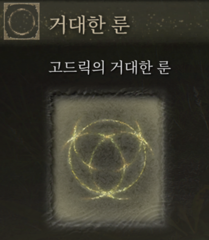 접목의 고드릭을 잡고나면 고드릭의 거대한 룬을 얻을 수있는데.... 이거 뭐 다크소울 3처럼 무기로 연성하는것도 아니고.. 그렇다고 팔수도없으니 뭐에쓰는건가 싶은데 장착이 가능하네요 ㄷㄷㄷ