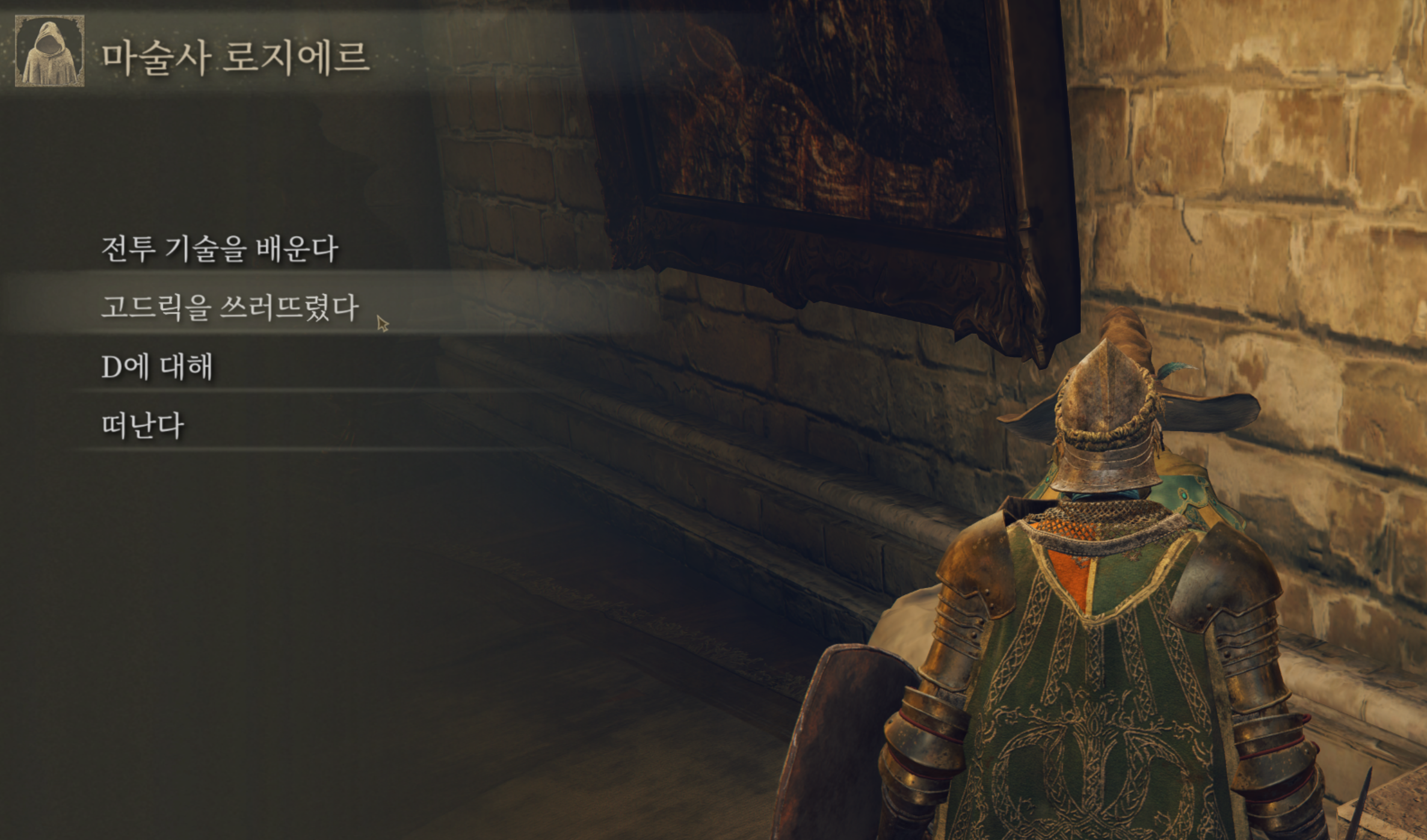 문을 나가서 우측을보면 다리를 다친 마술사 로지에르를 만날 수 있습니다. 멀기트랑 싸울때 열심히 도와주던 로지에르 ㅠㅠ