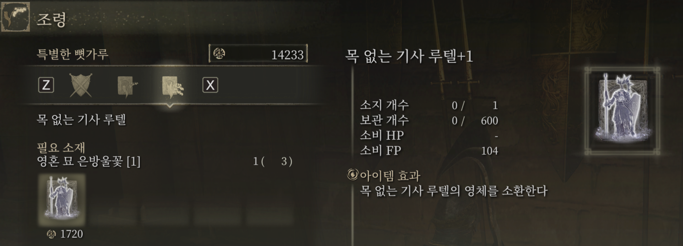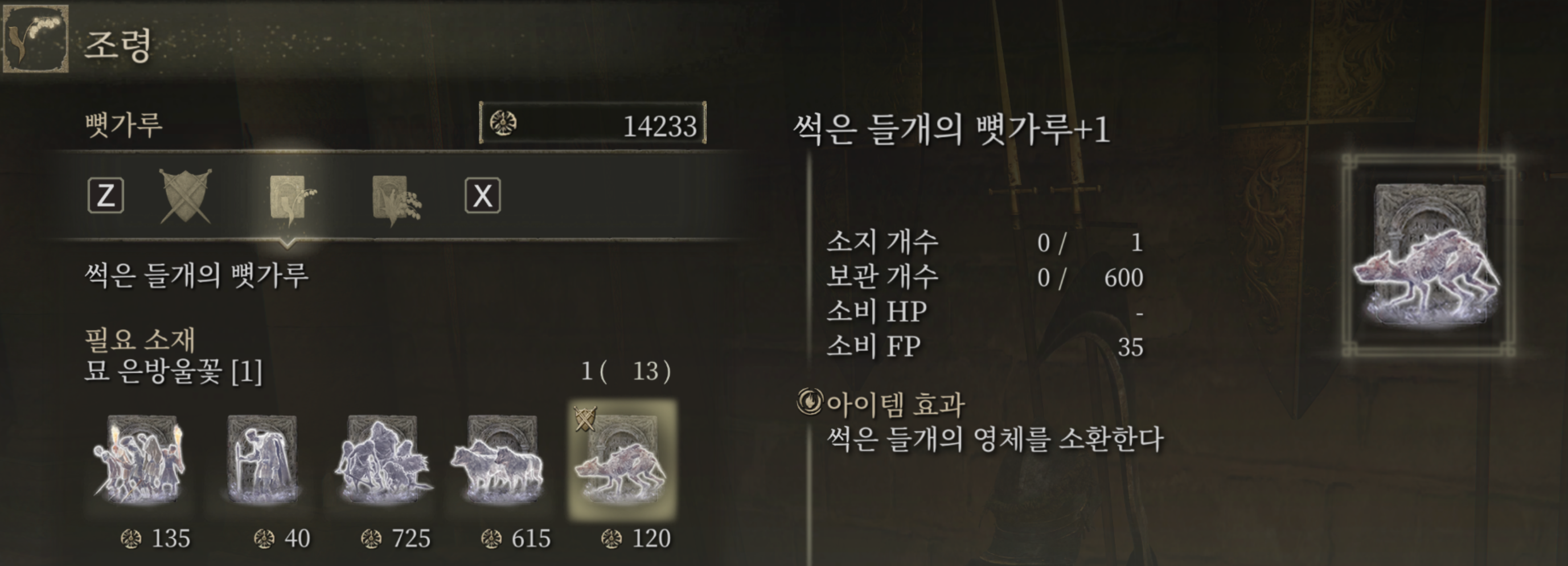 엘든링에서 뼛가루는 나와 함께 싸워줄 영체를 소환해 난이도를 낮춰주는 아이템으로 영체 없이 진행하기가 정말 쉽지 않습니다. 다만 강화가 되지 않은 영체는 몬스터의 공격에 생각보다 쉽게 녹아 버리는데요!! 이런 영체를 강화하면 더욱 든든한 동료를 얻을 수 있으니 강화하는 방법을 알아보겠습니다!!