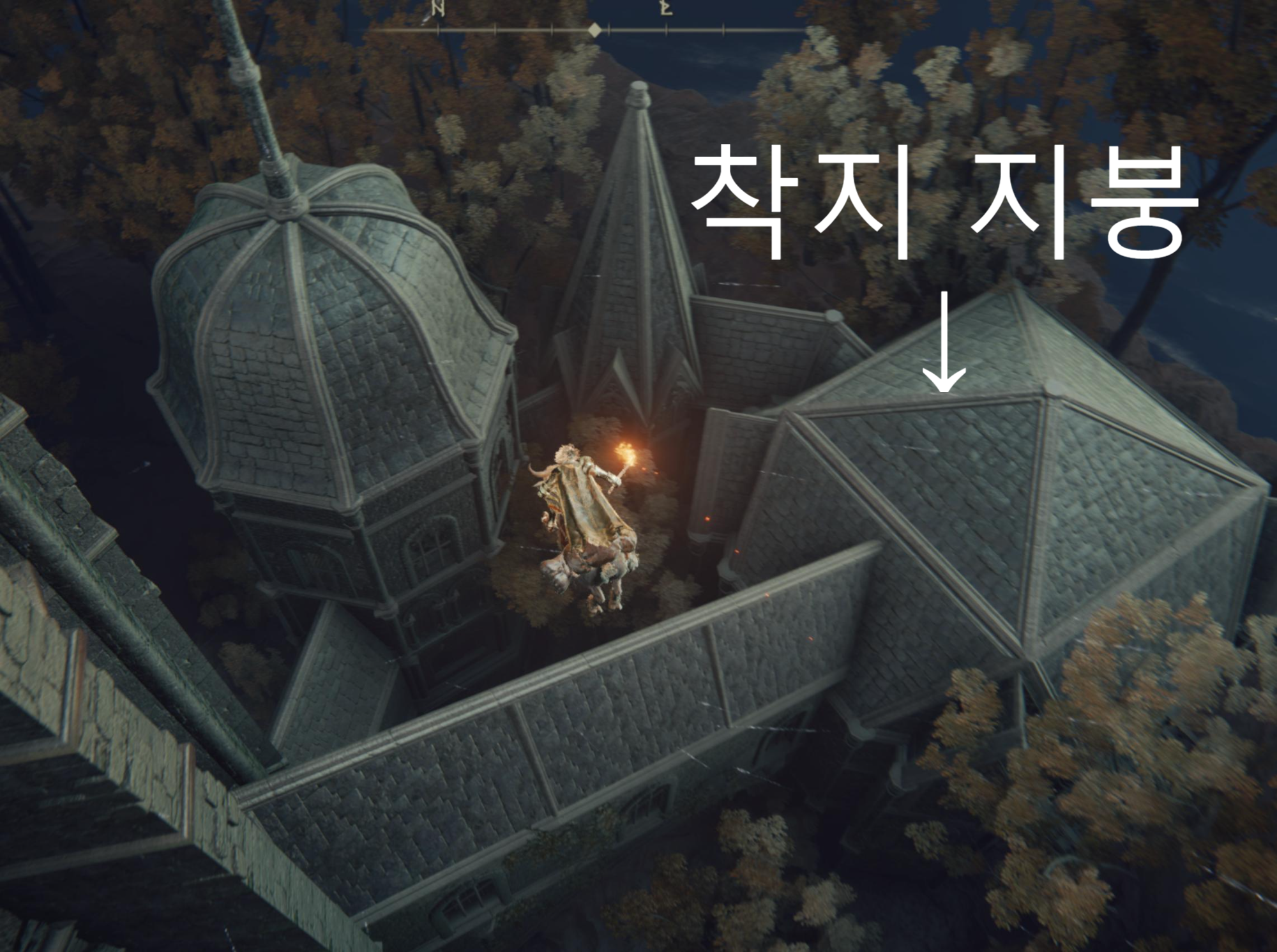 스크린샷에 표기된 우측 지붕으로 착지 하셔야 합니다!! 전경을 보여드리려고 막뛴거라서.. 지금 각도로 뛰시면 착지 못합니다 ㅋㅋㅋㅋ