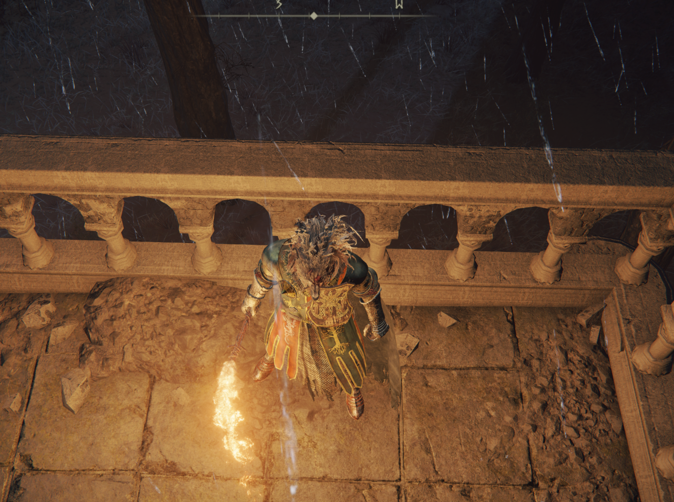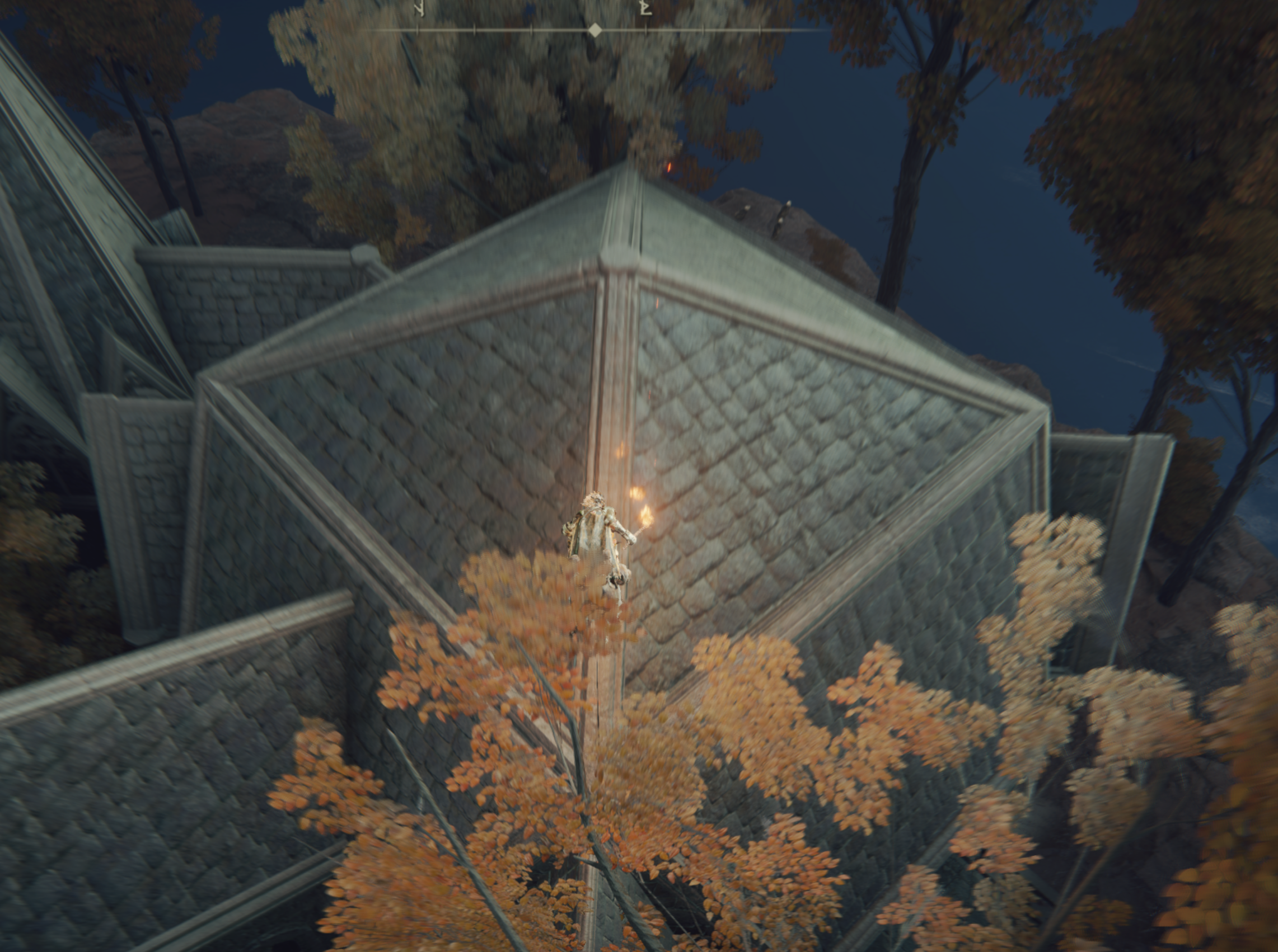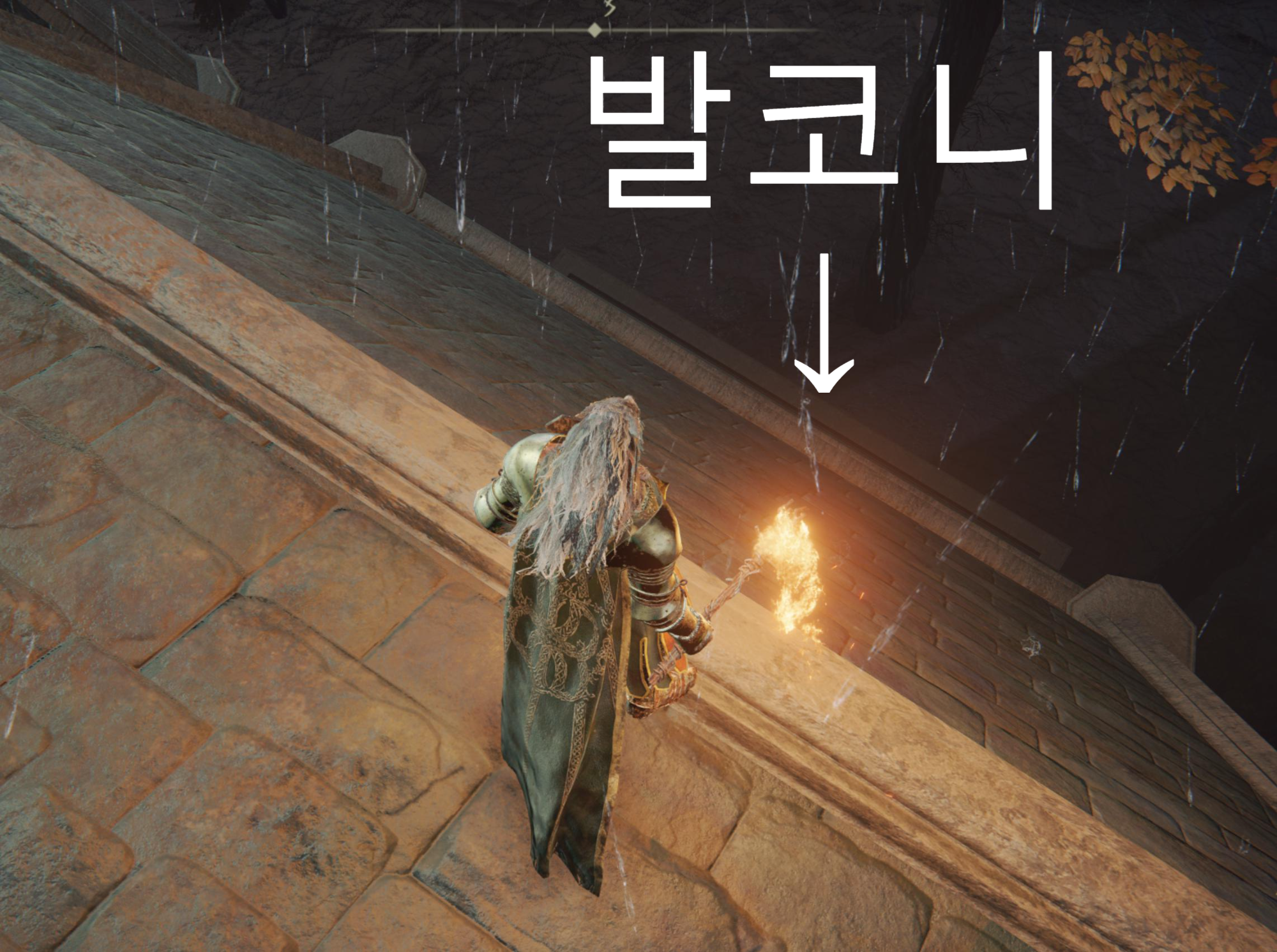 지붕에 착지 하셨다면 토렌트에 내려서 우측에 상승기류가 보이는 방향의 끝에 걸쳐 주세요. 끝에서 아래를 잘보면 발코니가 아주 살짝 보입니다!! 저기서 천천히 미끄러지시면 됩니다!