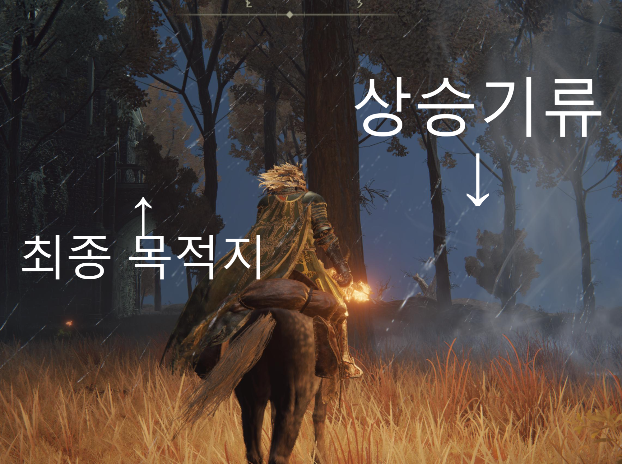 시작점에서 상당히 멀지만 짐승의 신전에서 가깝습니다. 다만 용이 득실득실한 지역을 뚫고 와야 합니다ㄷㄷㄷ 복돌이 타고 힘차게 달려보세요!