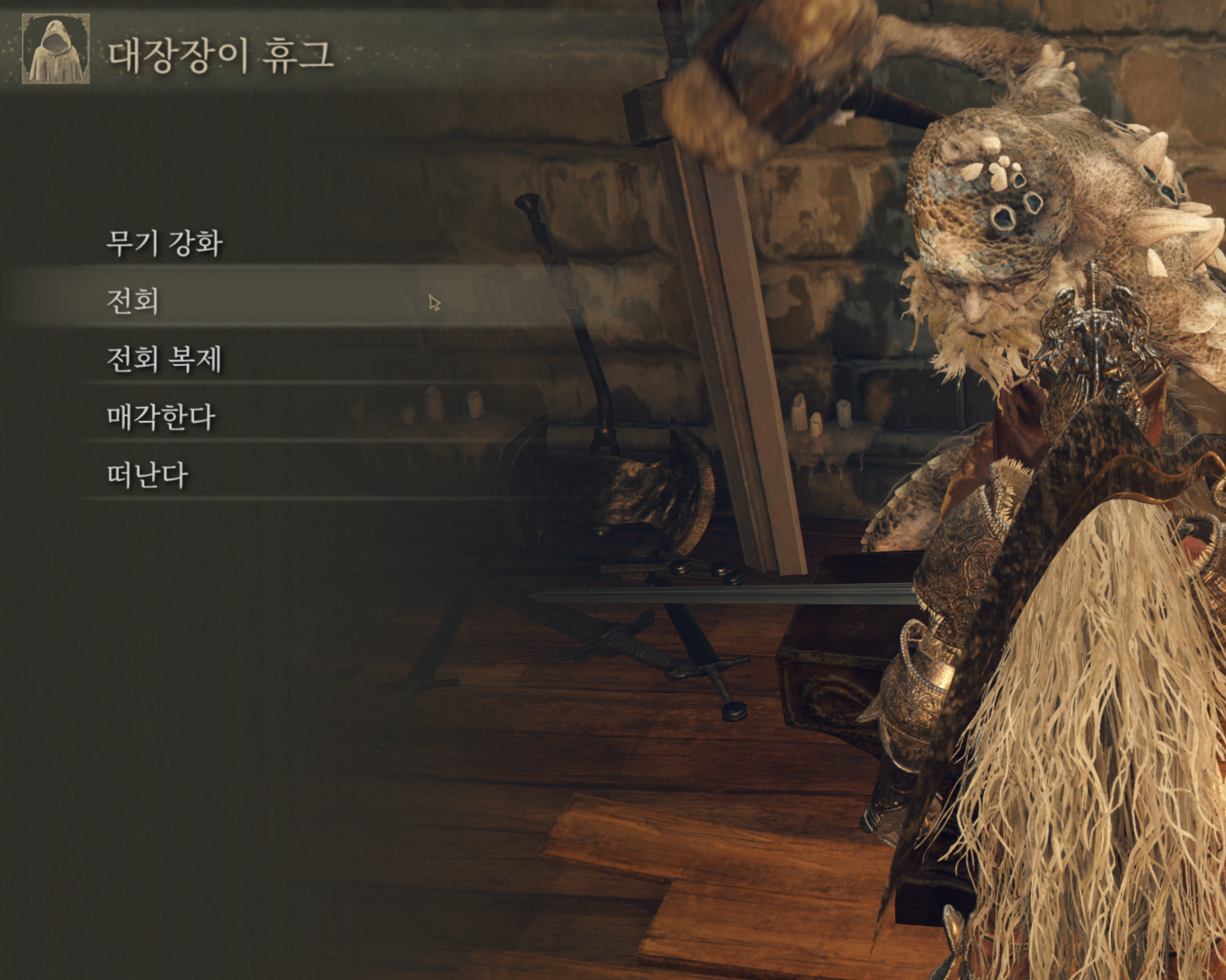 타도와 서리밟기를 챙겨서 원탁 대장장이 휴그에게 가면 전회라는 메뉴가 있습니다.