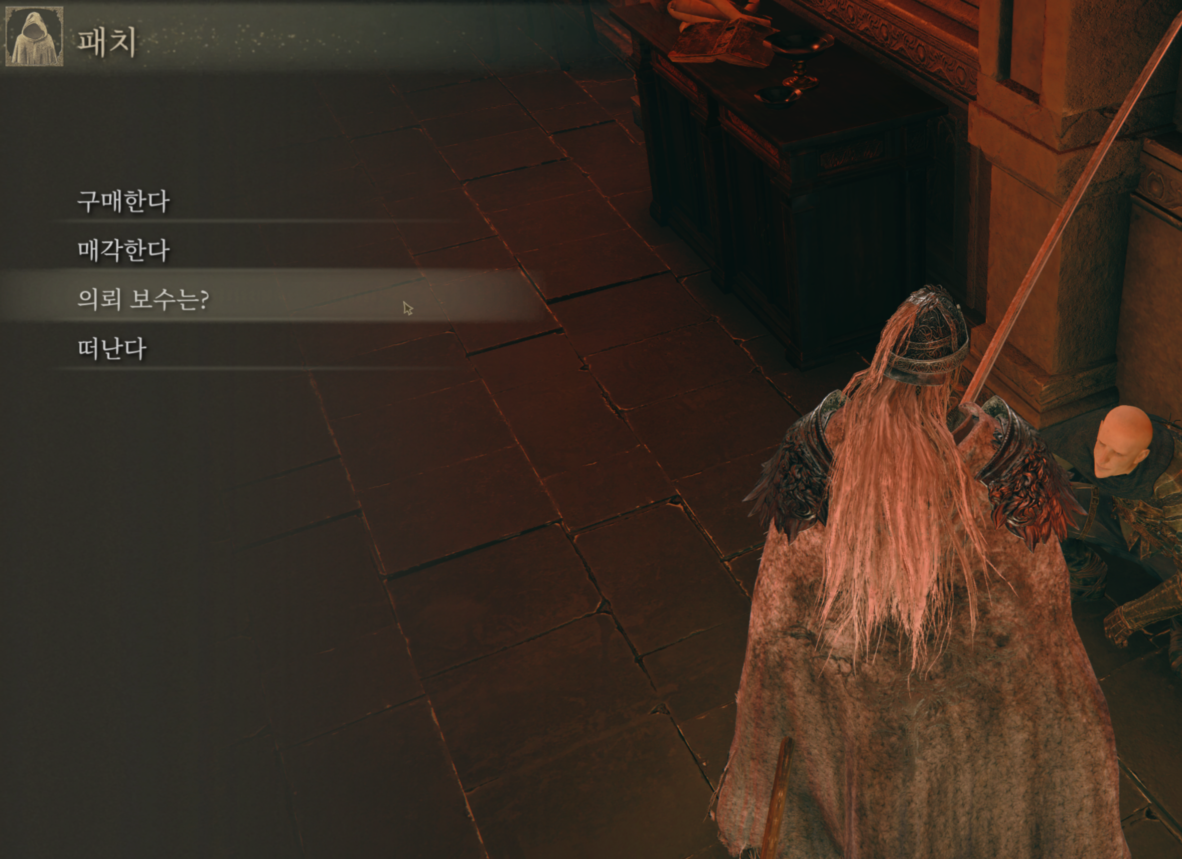 화산관 축복에서 밖으로 나가는 길을 보면 패치가 엉거주춤하게 삥뜯는 자세로 앉아있습니다.