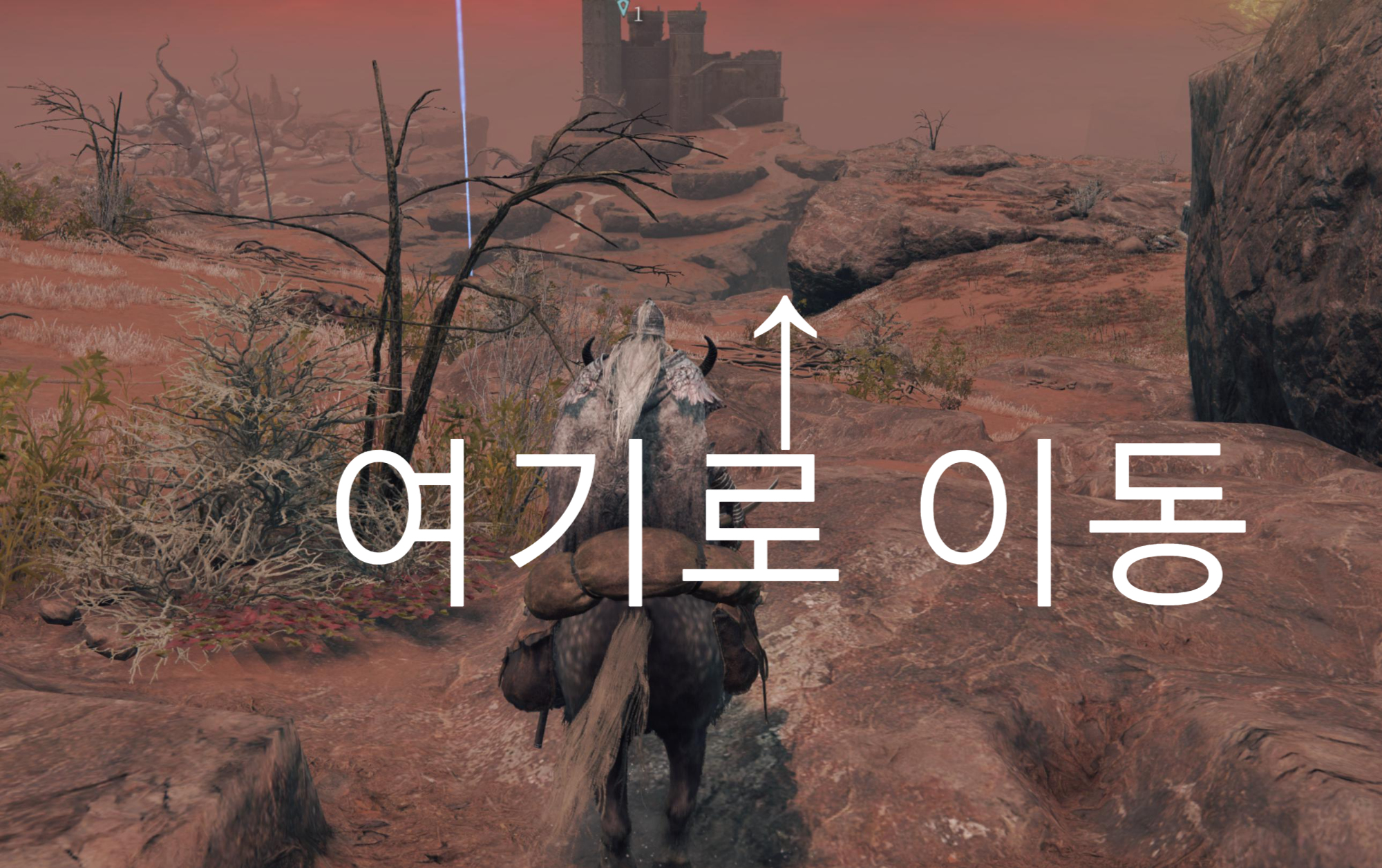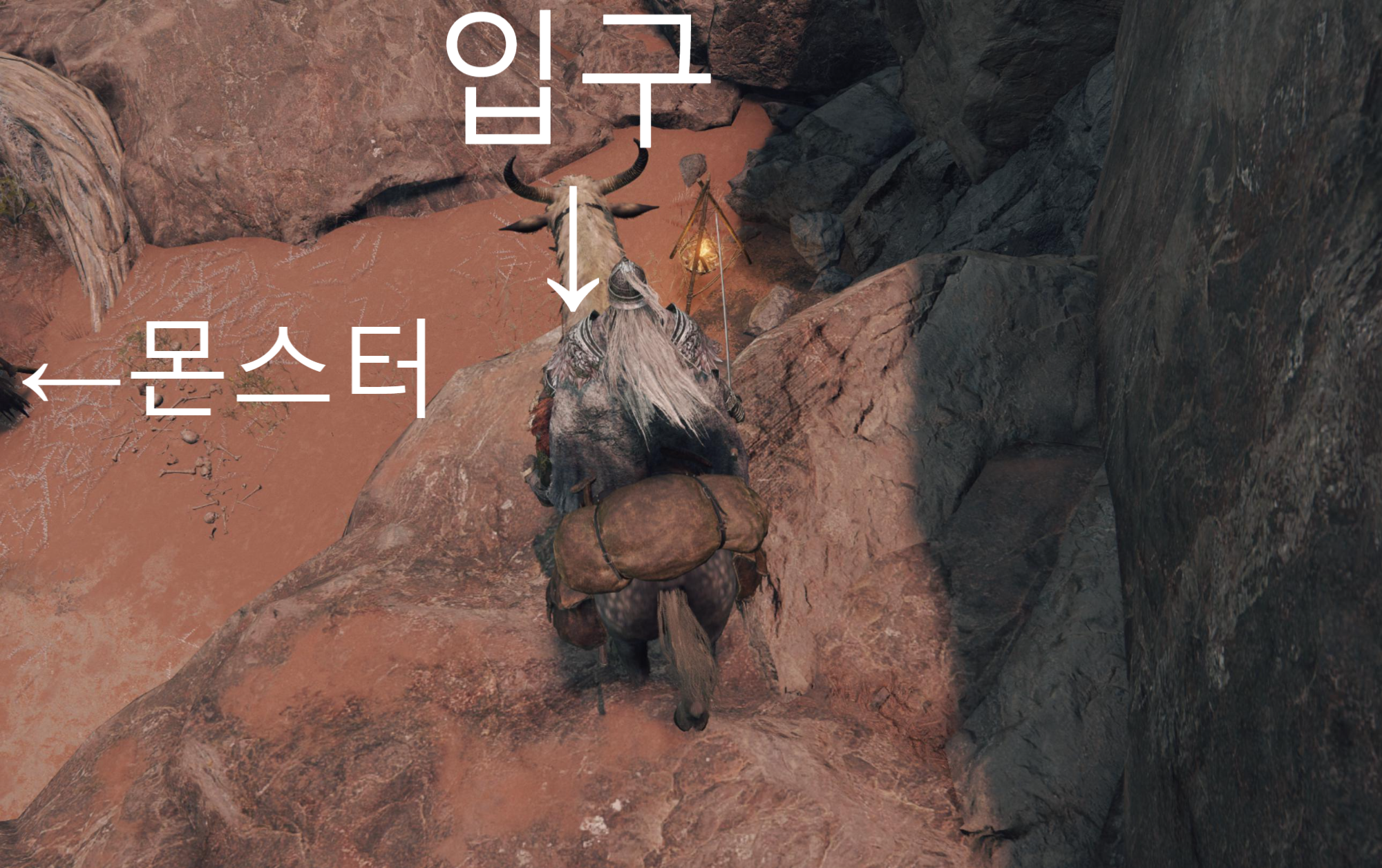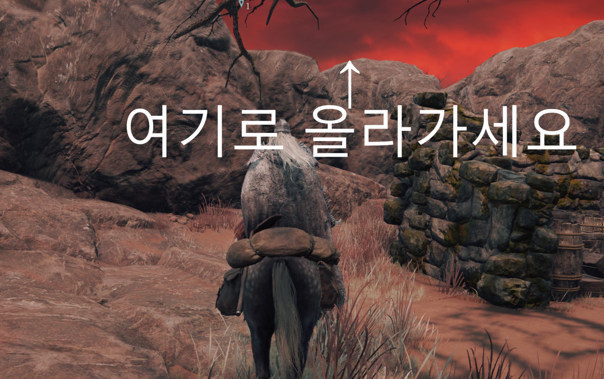 언덕을 올라가서 앞에보이는 바위 모퉁이로 이동해줍니다. 딱 붙어서 아래를 보시면 돼요.