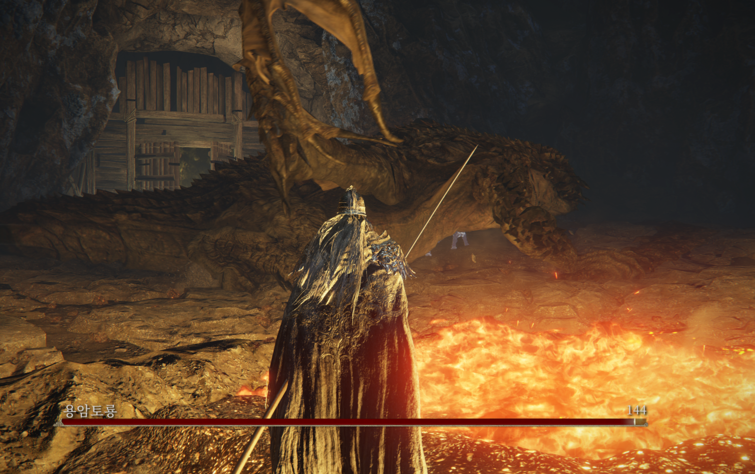 큰 문을 열면 보스방입니다. 바로 용암토룡이 달려듭니다. 공격범위가 넓고, 용암에 장판딜이 들어오며, 한방한방이 꽤나 아픕니다 ㄷㄷ 저는 공격 모션이 길고 엉덩이쪽 방어가 부실한걸 노려서 빵디 위주로 패잡았습니다.
